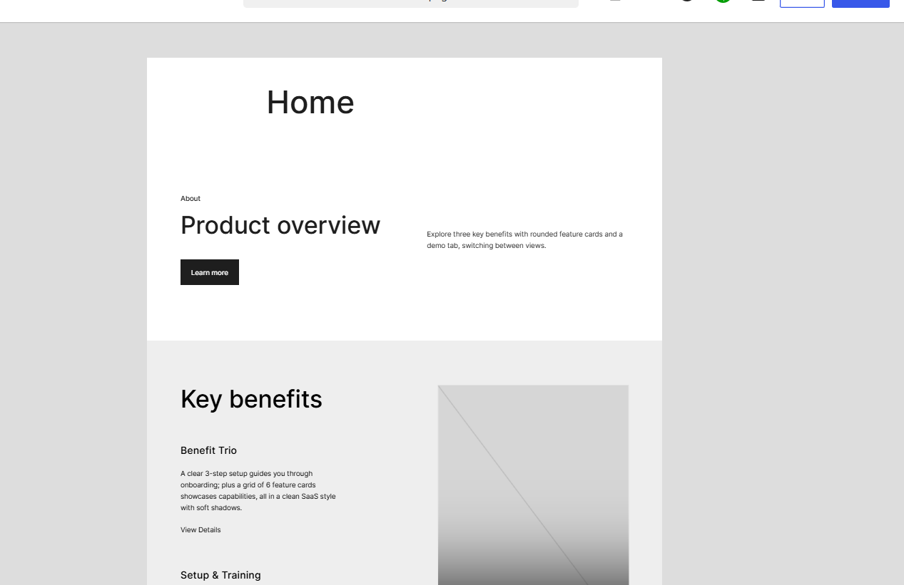 To get closer to the intended outcome, we broke the page into smaller parts. Header, hero, features, testimonials, footer - each generated through separate prompts.